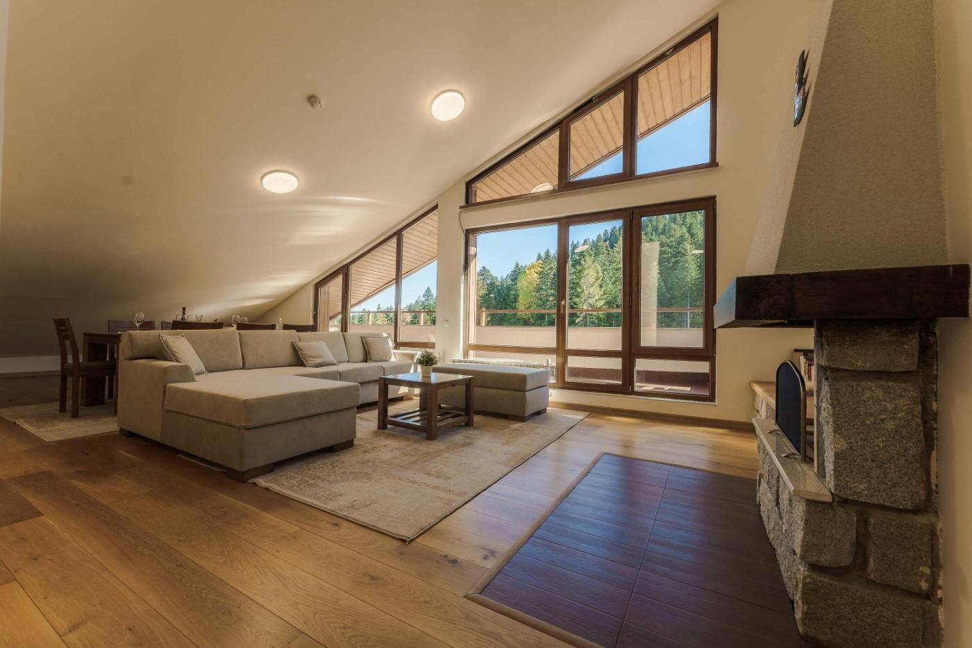 Three-Bedroom Apartment - High Floor. The hot tub and fireplace are the special features of this apartment. This spacious apartment comprises 1 living room, 3 separate bedrooms and 2 bathrooms with a bath and free toiletries. The well-equipped kitchenette features a refrigerator, an oven and an electric kettle. Featuring a terrace with mountain views, this apartment also provides a minibar and a flat-screen TV with cable channels. The unit offers 5 beds.