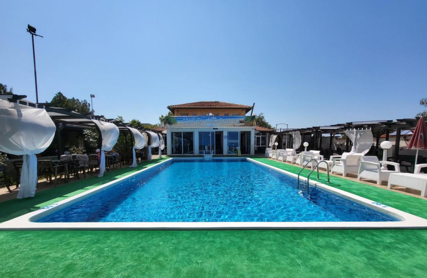 Set in Lozenets, 1.6 km from Central Beach Lozenets, Complex Exotica offers accommodation with a seasonal outdoor swimming pool, free private parking, a garden and a terrace. This 2-star hotel features free WiFi and a restaurant. The accommodation features airport transfers, while a car rental service is also available.