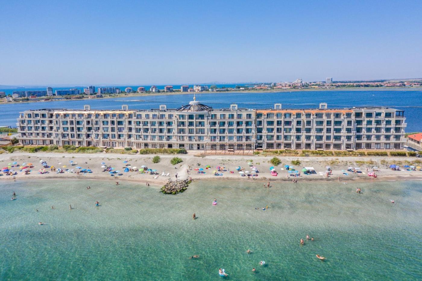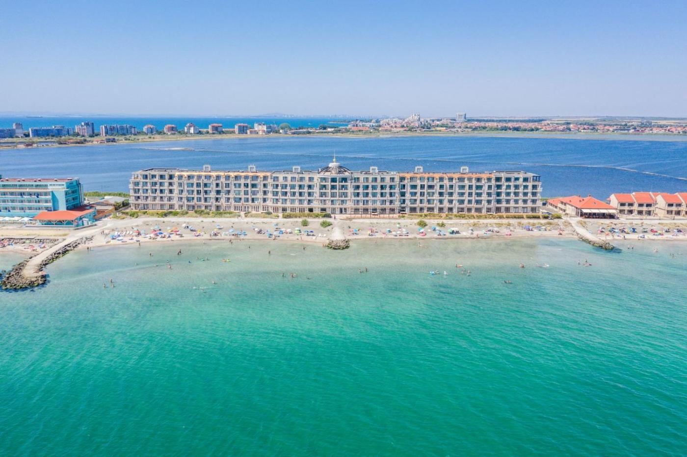 Gardenia Beach Palace is an apartment hotel complex situated on the narrow strip of land between the shores of the Black sea and the Pomorie salt lake. The guests of the hotel may enjoy direct access to the shallow and sandy beach in front of the hotel as well as some relaxing hours by the outdoor pool and the garden.