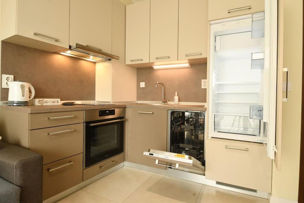 One-Bedroom Apartment. This air-conditioned apartment is comprised of 1 living room, 1 separate bedroom and 1 bathroom with a shower. In the kitchen, guests will find a stovetop, a refrigerator, a dishwasher and kitchenware. Featuring a balcony, this apartment also offers a washing machine, a tea and coffee maker and a flat-screen TV. The unit offers 2 beds.