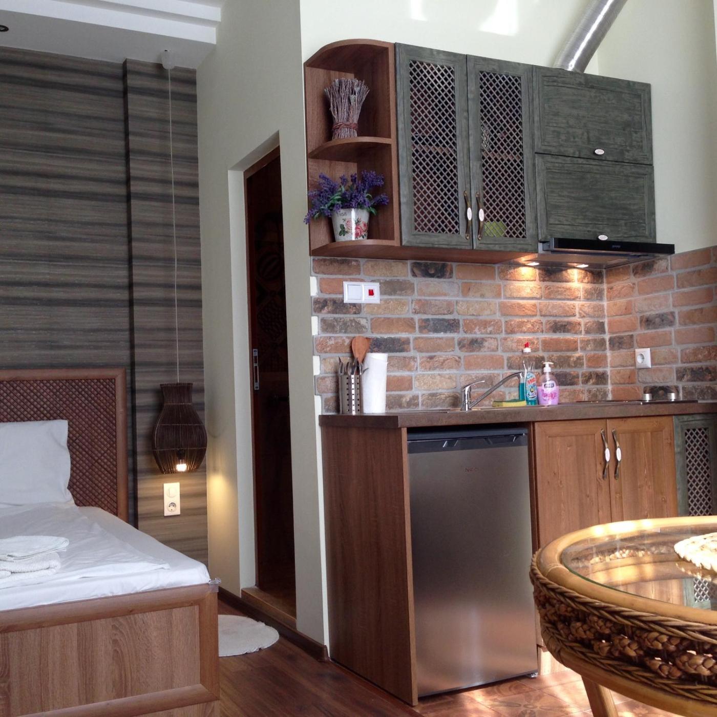 Deluxe Studio. The air-conditioned suite has 1 bedroom, 1 bathroom with a shower and a kitchenette. Guests can make meals in the kitchenette that features a stovetop, a refrigerator and kitchenware. The suite features a flat-screen TV with satellite channels, a seating area, a wardrobe, an electric kettle as well as garden views. The unit has 1 bed. ;