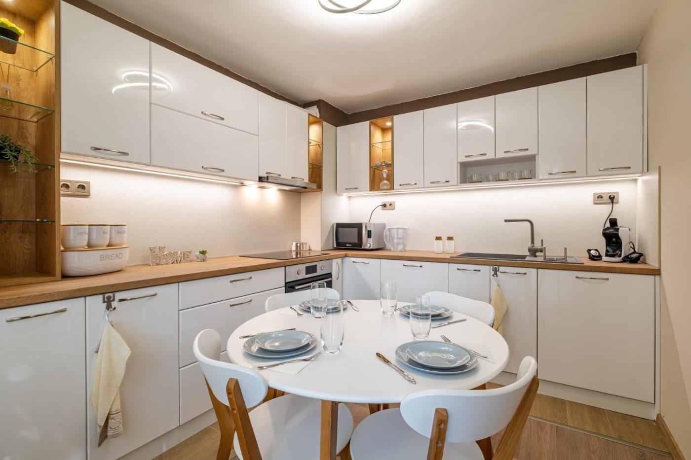 Two-Bedroom Apartment. This spacious apartment features 1 living room, 2 separate bedrooms and 1 bathroom with a shower and a hairdryer. In the well-fitted kitchen, guests will find a stovetop, a refrigerator, a dishwasher and an oven. This air-conditioned apartment comprises a dining area, a flat-screen TV with streaming services a washing machine and a terrace. The unit has 4 beds.